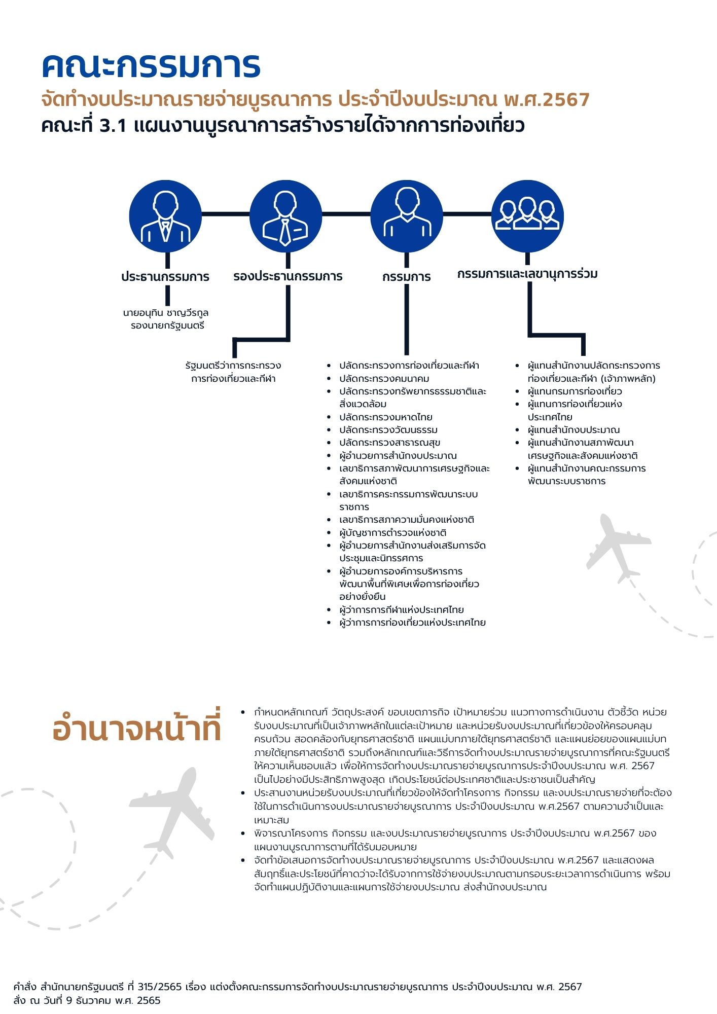 แผนงานบูรณาการสร้างรายได้จากการท่องเที่ยว ประจำปีงบประมาณ 2565