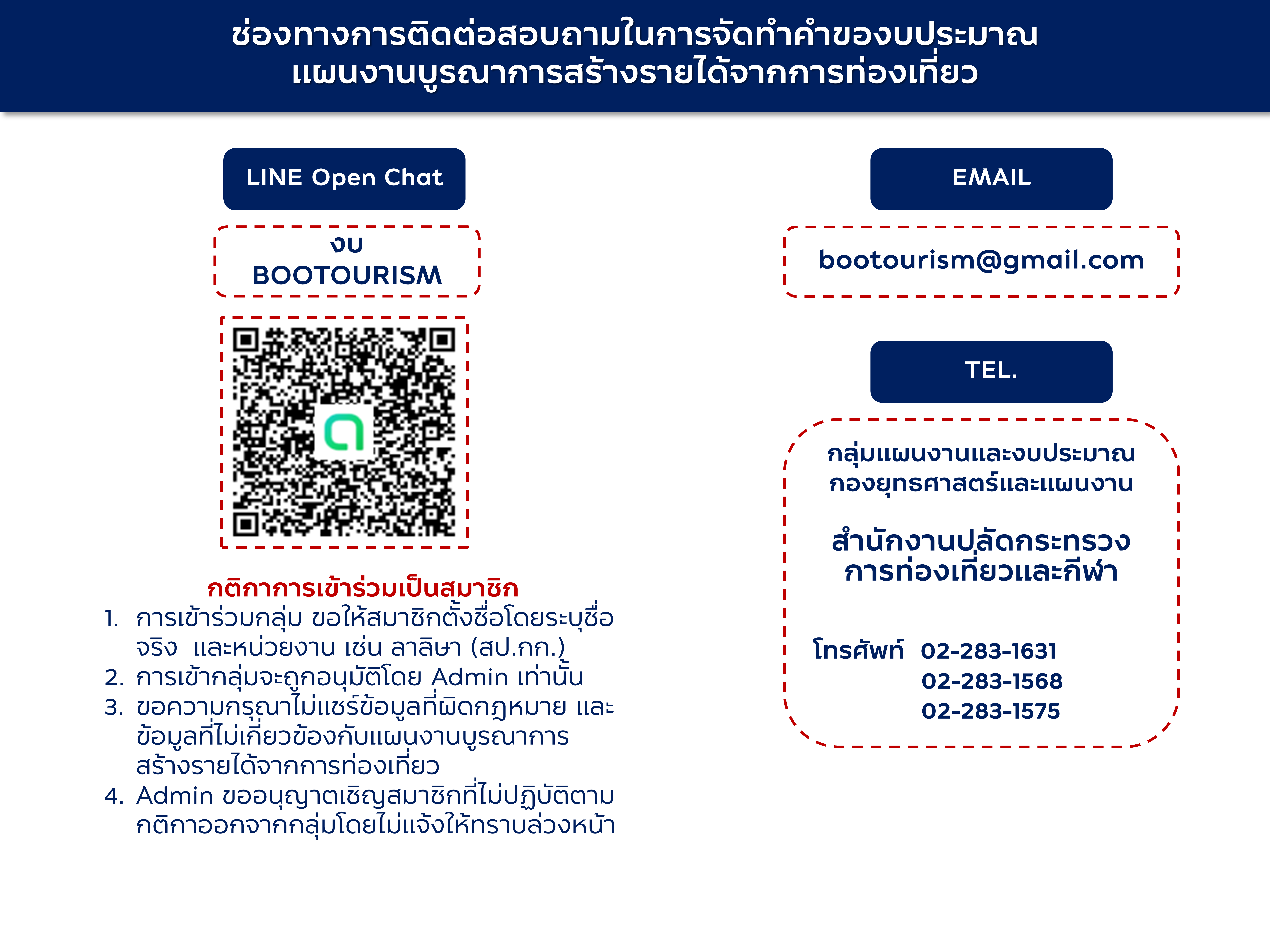ที่อยู่ : สำนักงานปลัดกระทรวงการท่องเที่ยวและกีฬา เลขที่ 4 ถนนราชดำเนินนอก แขวงวัดโสมมนัส