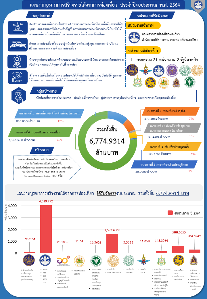 แผนงานบูรณาการสร้างรายได้จากการท่องเที่ยว ประจำปีงบประมาณ 2564