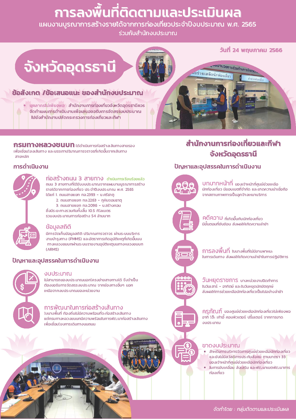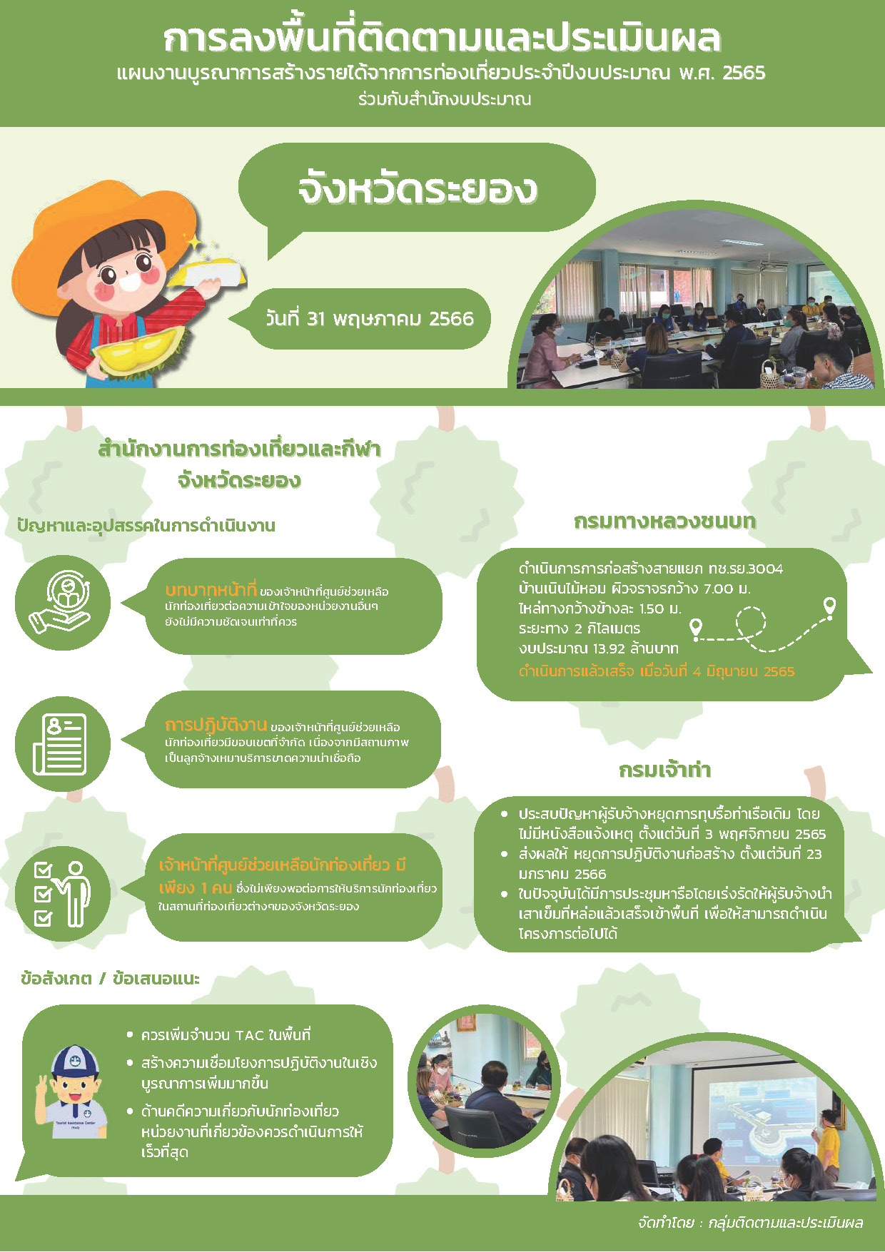 สรุปการลงพื้นที่ติดตามและประเมินผลแผนงานบูรณาการสร้างรายได้จากการท่องเที่ยวประจำ ปีงบประมาณ พ.ศ. 2565